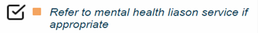 This is a mandatory action. Mandatory actions always appear in the activated care plan. Administrators configure mandatory actions. You can’t deselect this action. |