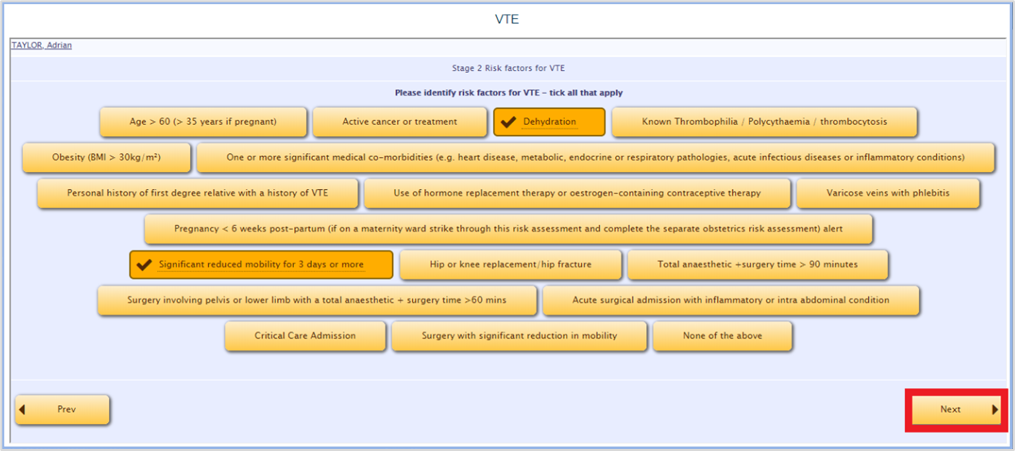This is an example of a VTE assessment. The actual VTE assessment might vary between organisations.