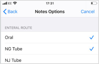 Add or edit the patient’s enteral route(s). Different enteral routes cannot be prescribed until entered onto the patient’s record (via mobile or desktop). |