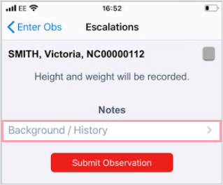 If the height and weight are recorded in Observations on the mobile app, they will populate, or update, the top banner.