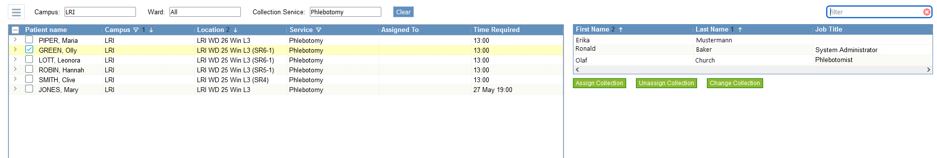 Users with permissions to assign collections, for example Phlebotomy managers, can assign sample collection tasks to their team.