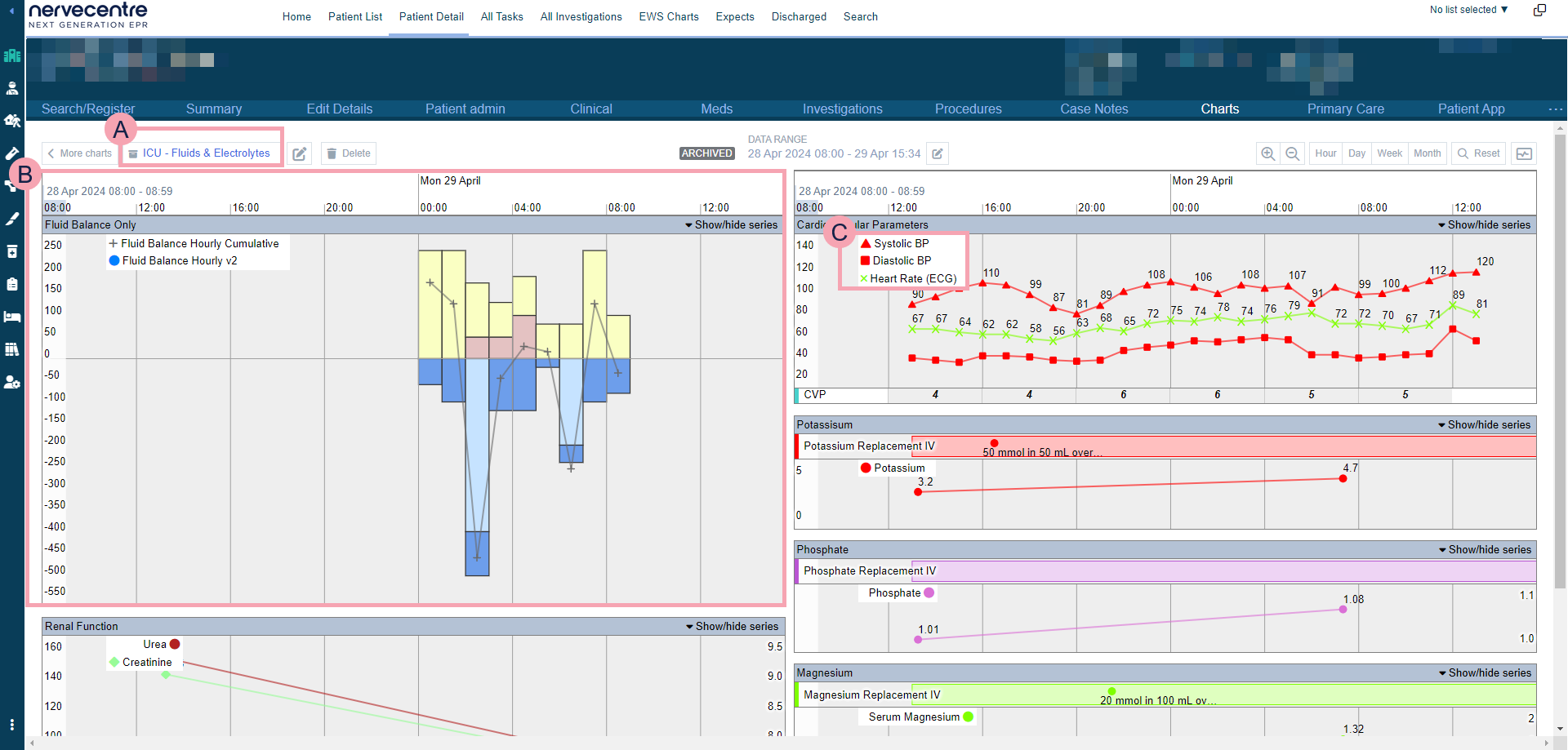 For example, if a patient visits ICU, you might pin a chart at the start of their visit, and archive the chart at the end of their visit. You can view the archived chart after their visit.