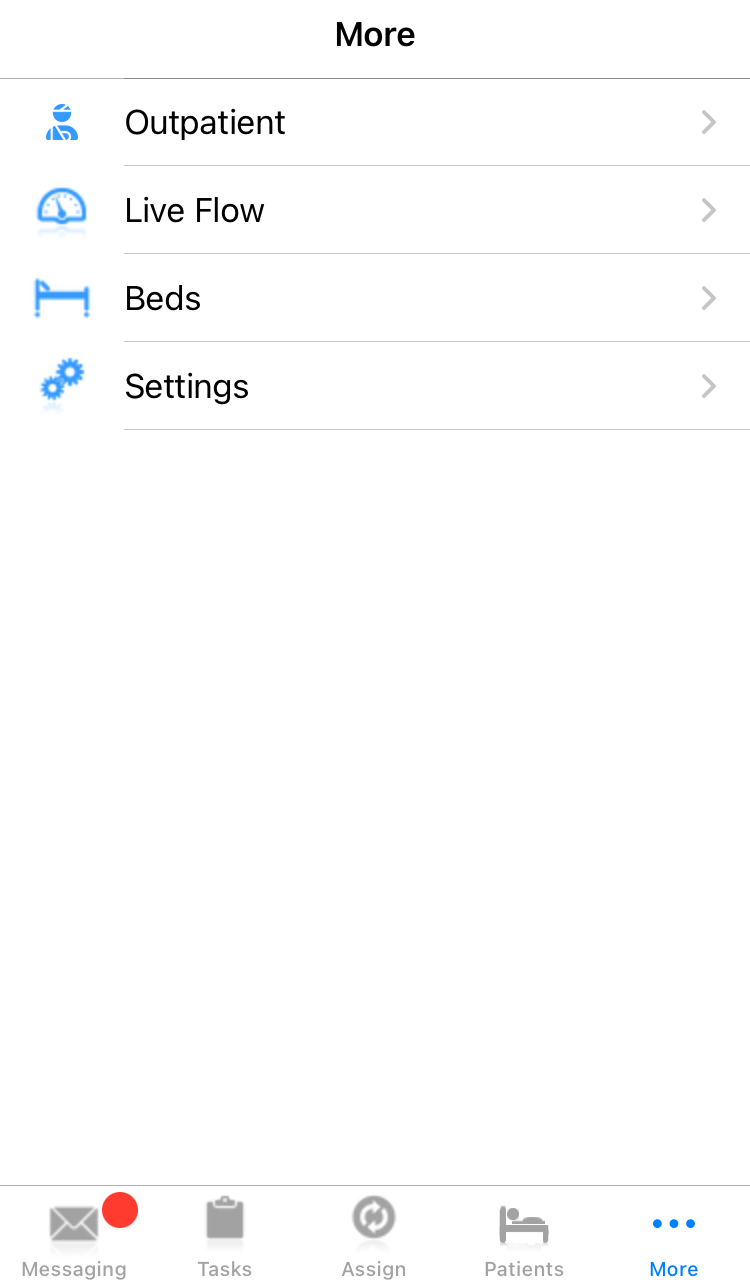 Shows the list of tasks assigned to you. Each task shows the name of the task, the patient's location, the patient's name, and the date and time the task was created. Select a task to progress the task. Select and hold any task to sort the list of tasks. You can sort tasks by priority, location, age, or category.