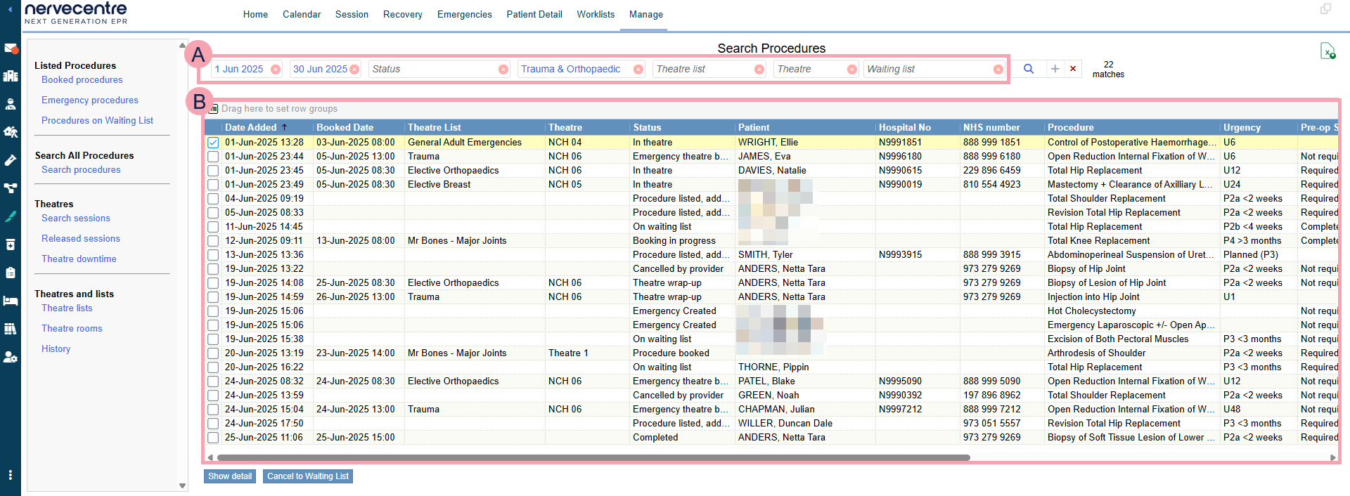 From Theatres > Manage > Search procedures, you can search all procedures.